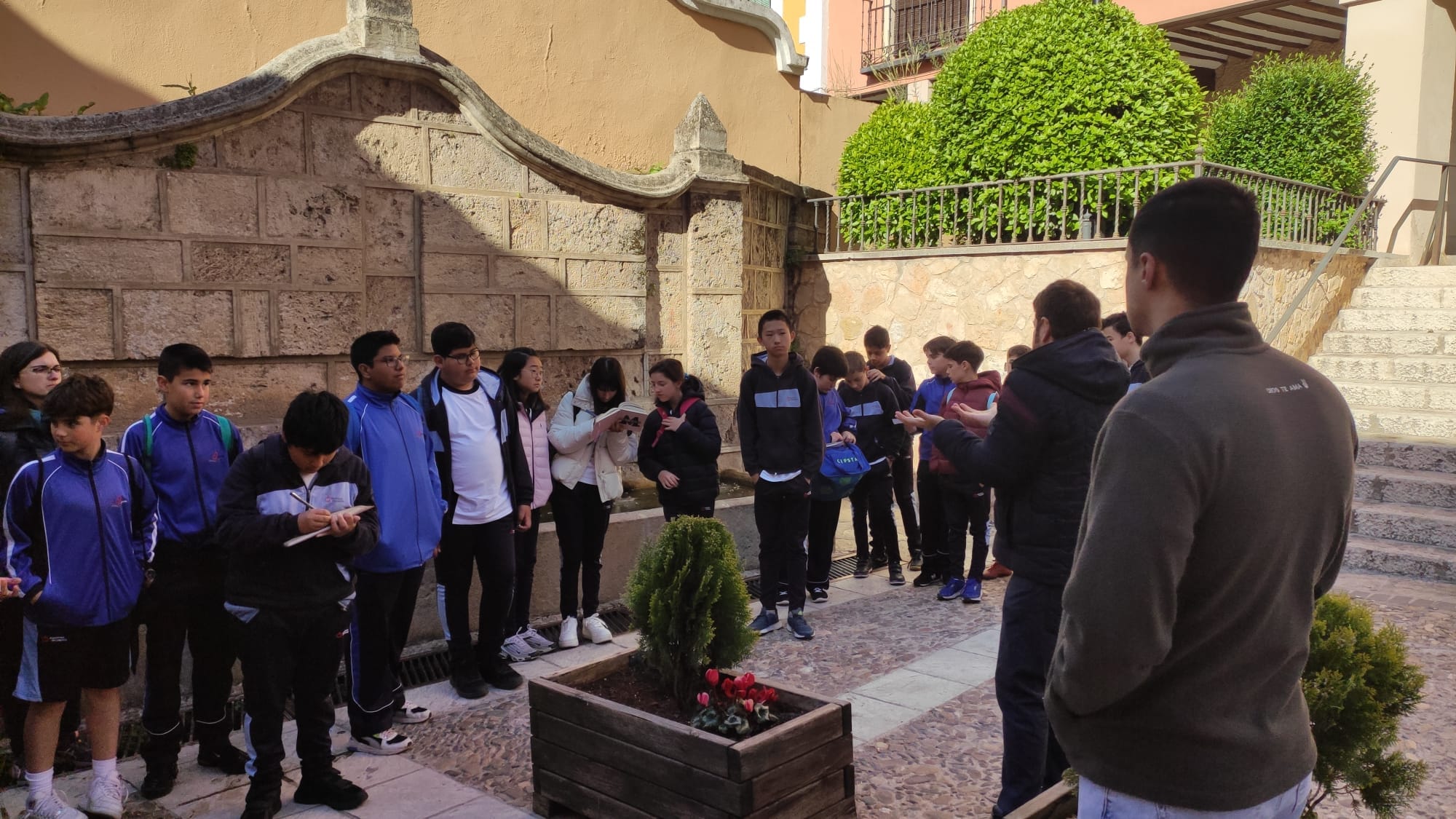 Fruto de todo este pasado visitamos las calles la Plaza del Coso; las numerosas fuentes, mención especial la Fuente de los Doce Caños y el Lavadero; el Castillo y la Iglesia de Santa María. En el templo, delante de la Imagen de la Virgen de la Peña, nuestros alumnos, en el mes de las Flores, rezaron a la Virgen y cantaron «Salve Virgen de Consolación».